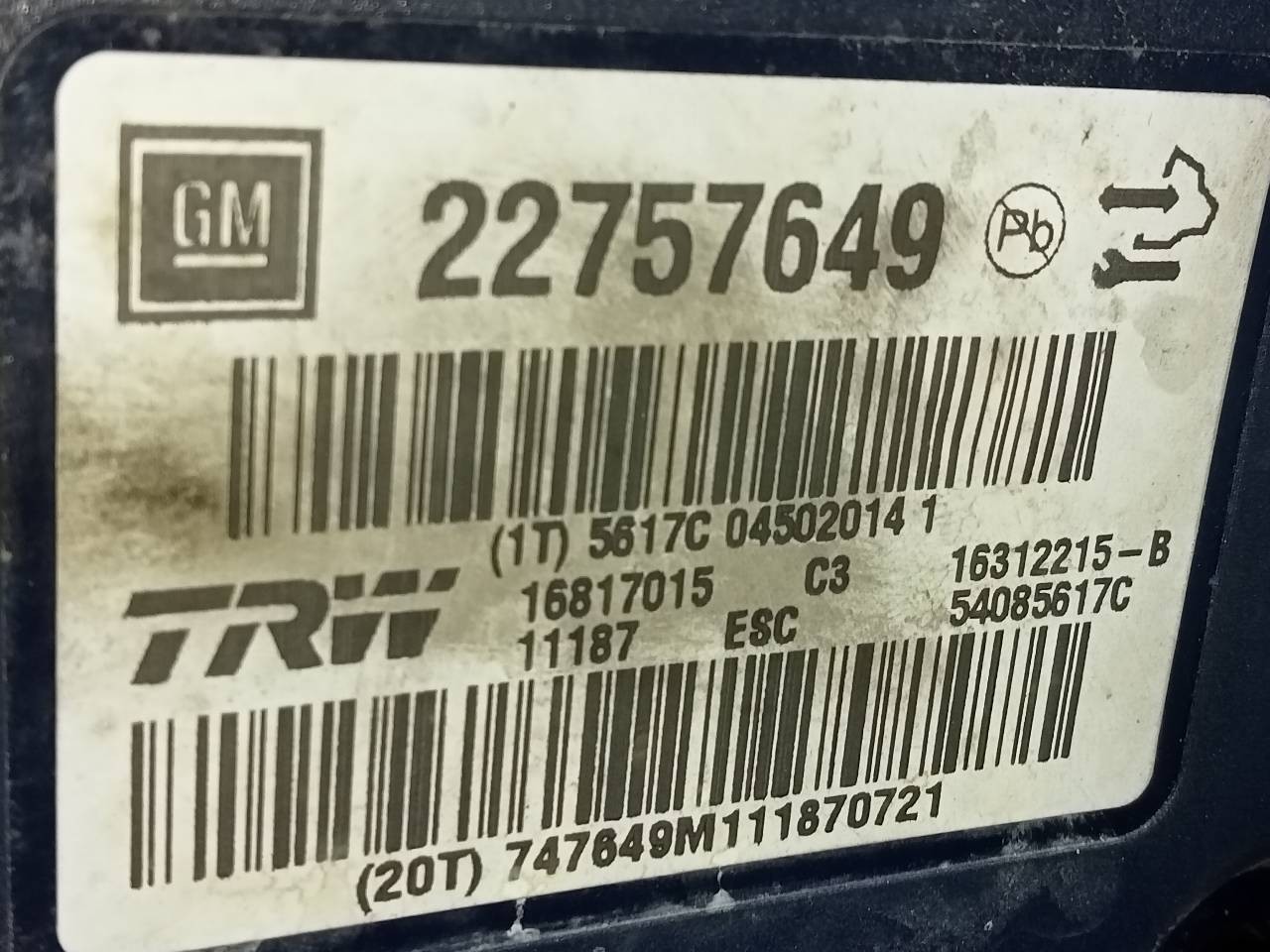ABS 22757649 / P3-A8-24-4 / 16817015 OPEL INSIGNIA BERLINA