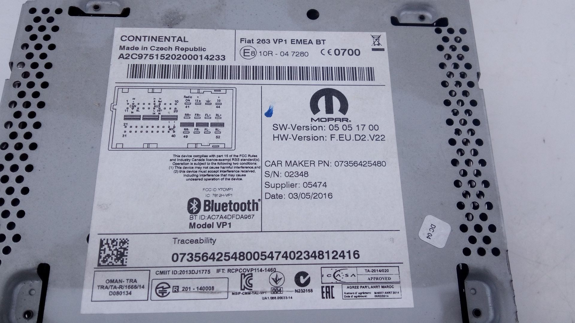 Sé el primero en opinar sobre “SISTEMA AUDIO / RADIO CD 10R047280 / E3-A4-23-1 FIAT DOBLO II CARGO (263)”